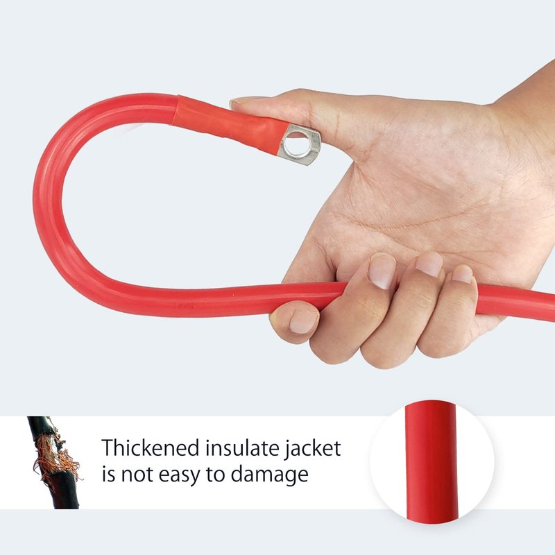 - Safety material: The copper battery cables lugs are tinned coated, well crimped, and utilize a closed end design for corrosion protection. PVC insulating sheath of 2 awg battery cable can withstand the test of the car or marine environment.