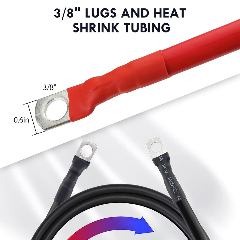 2 awg battery cable 3Ft Copper Power Inverter Wire with 3/8" Lugs for Solar Car Boat RV (2pcs)