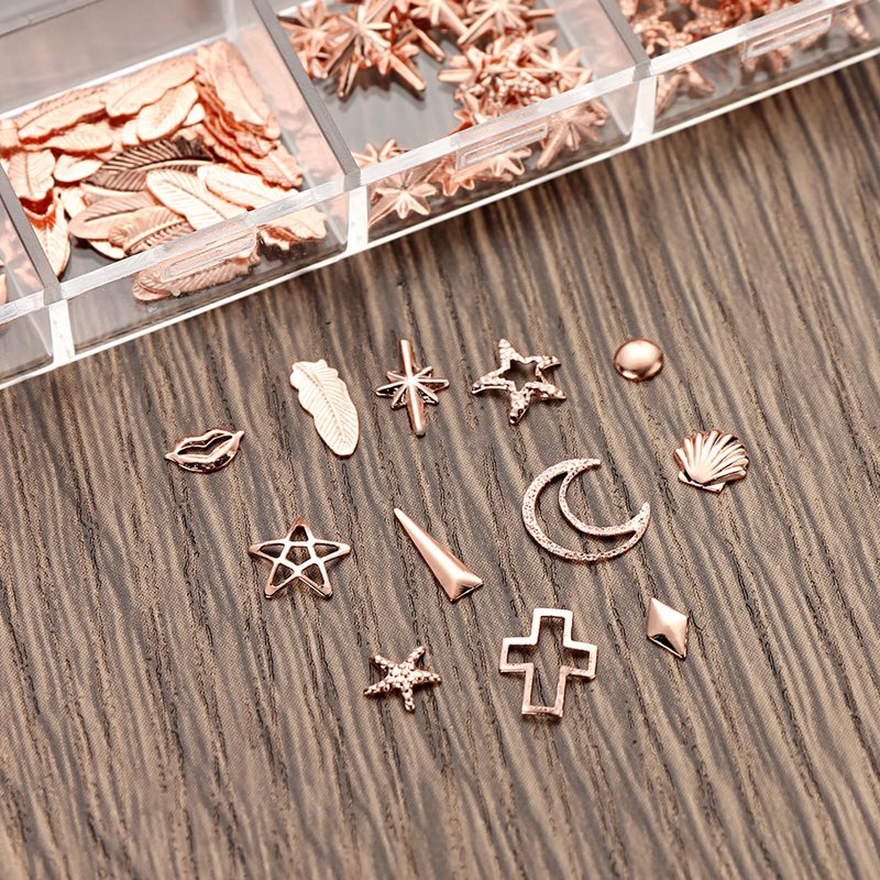 2 Box 3D Metal Nail Charms Nails Art Studs Glitter Rose Gold Metal Nail Studs Mix Shape Star Moon Feather Triangle Rivet and Other Designs DIY Nail Art Decoration Accessories