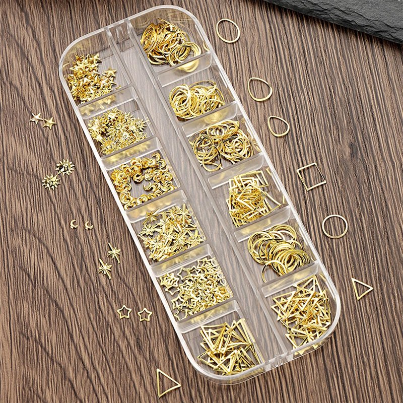 - 【Package includes】Come with 2 boxes metal nail art decorations in various shape, size, including star,moon,triangle, sun,square,shells, starfish, cross, feathers, oval, lip and other style.Very exquisite workmanship,can fully meet your different needs of nail art.
