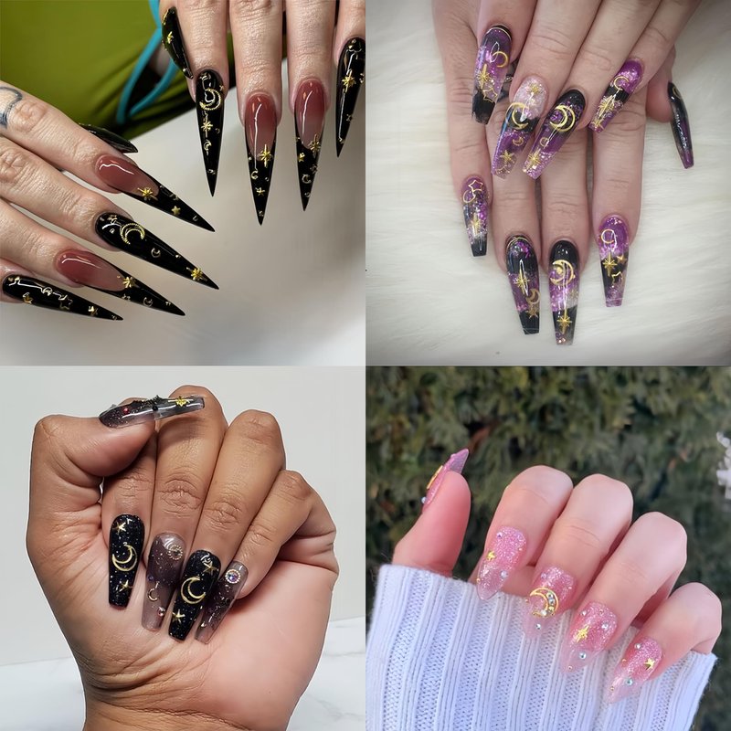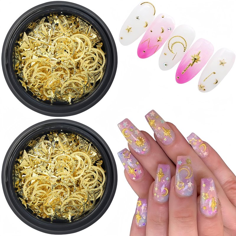 - Package Contain:You will get 2 box gold star nail art charms, it contains moon nail charms metallic star moon nail charms, a variety of quantities can meet your different nail design decoration needs, allowing you to create more fashionable and charming nail art.