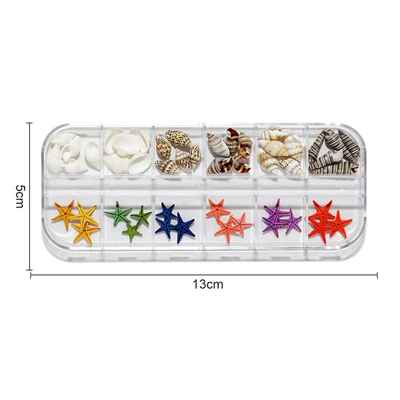 - 12 different styles, such as starfish, conch, shells, shell slices, beads, etc.