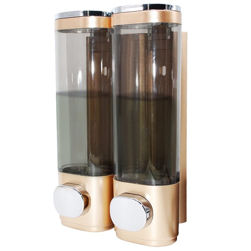 2-Chamber Soap Dispensers Wall Mount,400ml Bathroom Shower Pump Dispenser,Press Manually Lotion Shower Soap Dispenser Usefor Home,Bath,Kitchen,Hotels,Restaurants(Champagne)