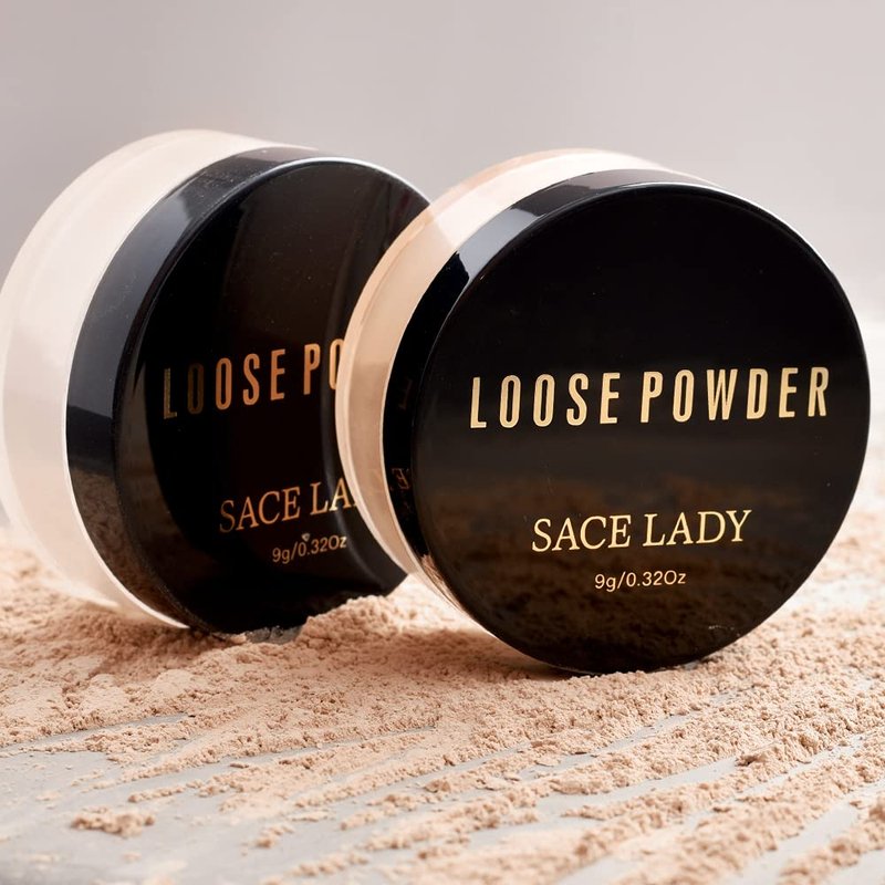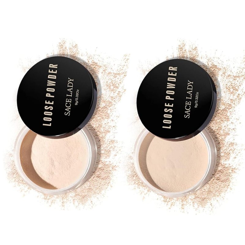 SACE LADY 2 Colors Oil Control Loose Powder Setting Make Up Set Waterproof Poreless Long Lasting Soft-Matte Face Powder Makeup, 0.32Oz
