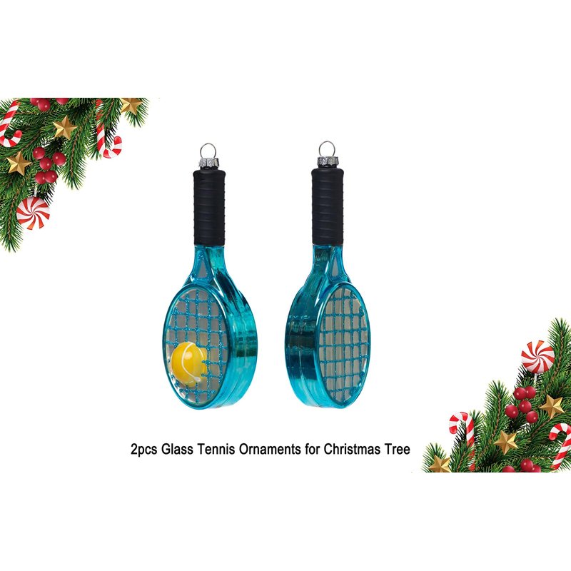 - Quantity: 2pcs glass tennis racket racquet with ball ornaments for Christmas tree.