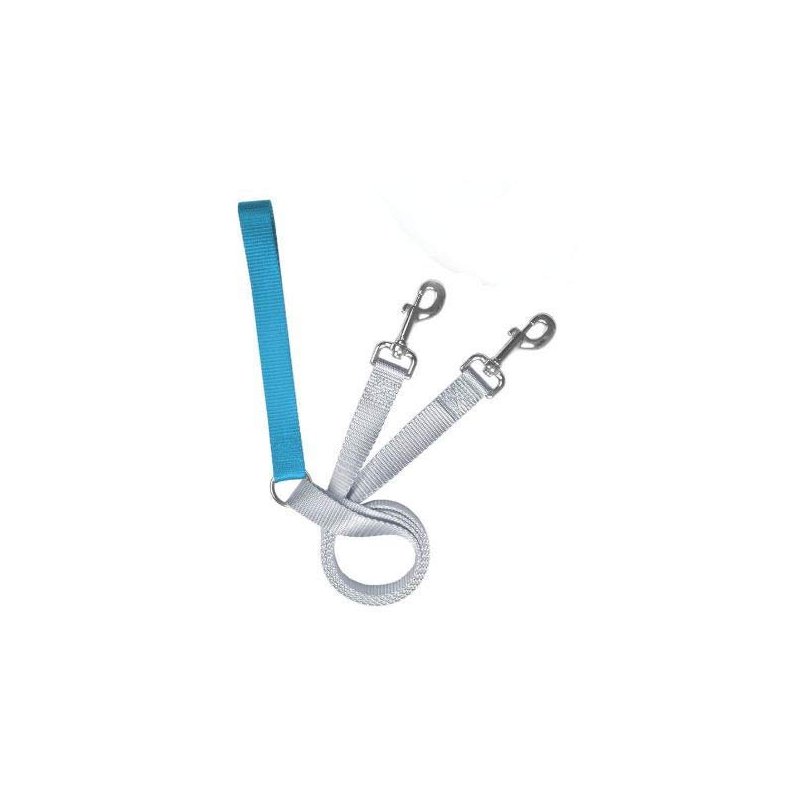 LEASH ONLY (Freedom No Pull Harness sold separately). Double clip leash only, 1 inch wide. Works with Freedom No Pull Harnesses. Features colored loop handle and silver leash webbing. Two metal clips for attachment in two places on harness. Clipped in both places leash length is approx 39 inches. Clipped in one place the leash is approx 63 inches.