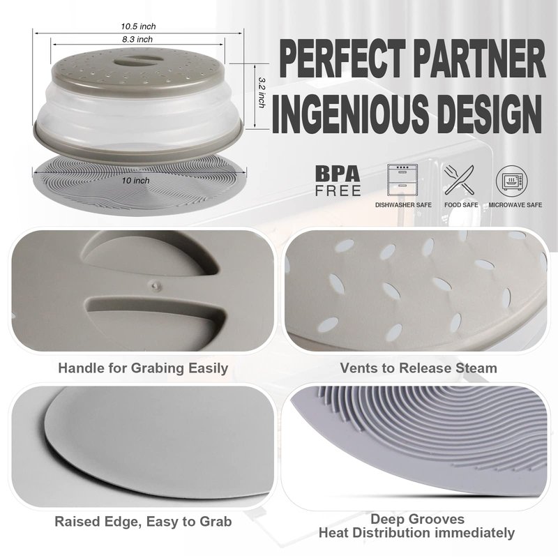 - 【Perfect Design】Microwave Cover for Food is designed with vented holes on the top. it allows the airflow to circulate inside and outside. A handle was designed in the middle of the top for easy grabbing and avoid burns.
