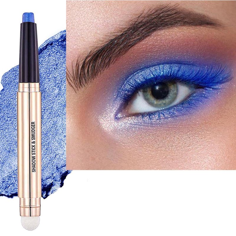 2 in 1 blue Eyeshadow stick and Sponge Makeup Brush, Smooth Cream Shimmer Shadow Pencil Long Lasting Waterproof Eye Shadow Highlighter Stick Makeup , Hypoallergenic Eyeshadow, Highlighter Eye Liner