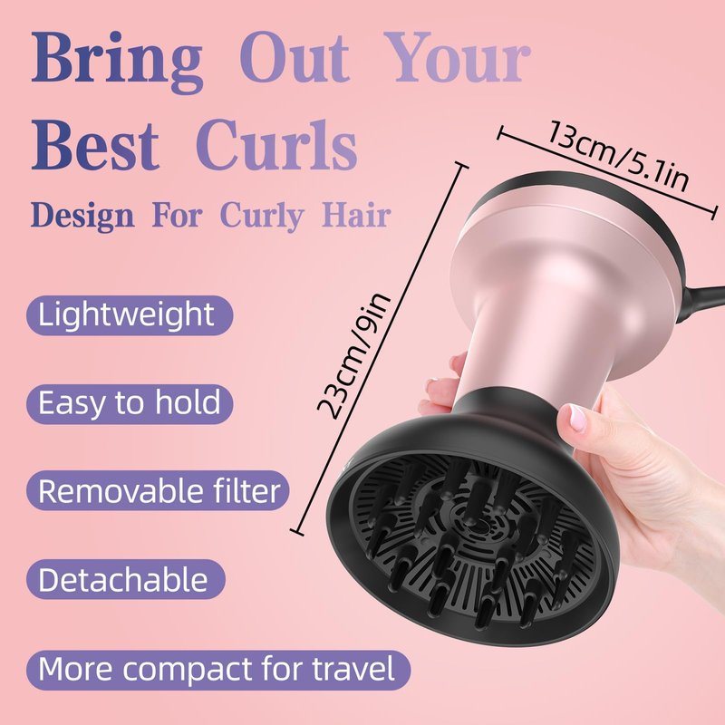 - 2-in-1 Detachable Accessories for Tangle-Free Volume - Equipped with a removable curly hair diffuser and a wide-tooth comb, this curly curls dryer adds volume and prevents tangles. The wide-tooth comb detangles and lifts hair from the roots, giving a full and natural look. Both accessories are detachable, making it easy to change, store and take with you wherever you go.