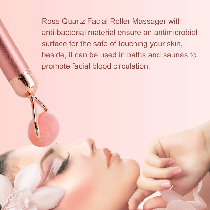 2-IN-1 Electric Jade Roller Massager Facial Roller & Face Massager, Rose Quartz