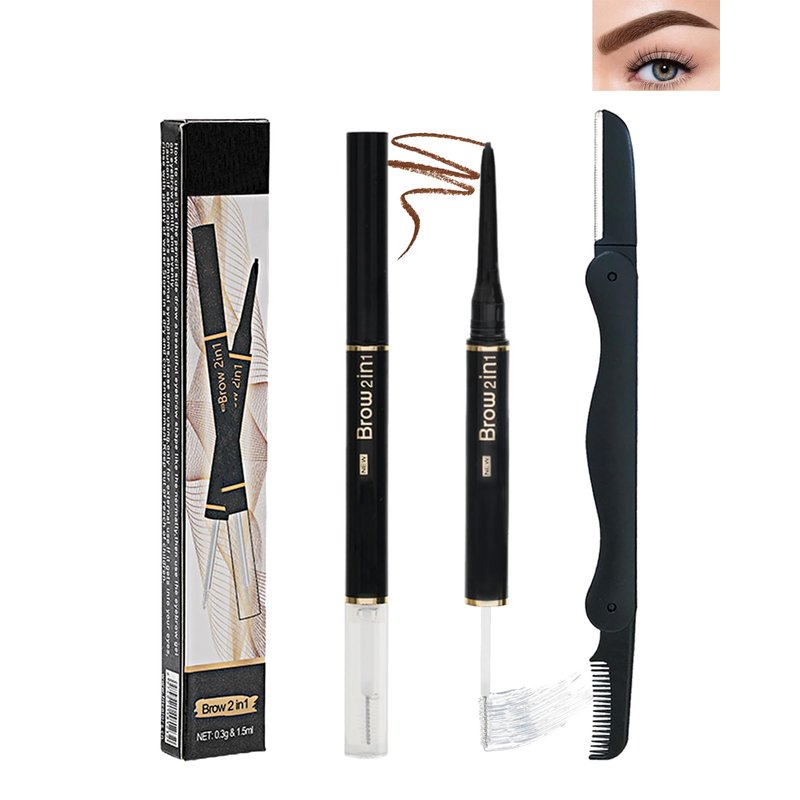 2-in-1 Eyebrow Gel & Brow Pencil, Micro Retractable Eyebrow Pencil Coffee Waterproof Brow Gel,Ultra Fine Long Lasting for Perfect Eye Liner Brows Women Makeup Eyebrows Shaper Filler with Brow Razor-02