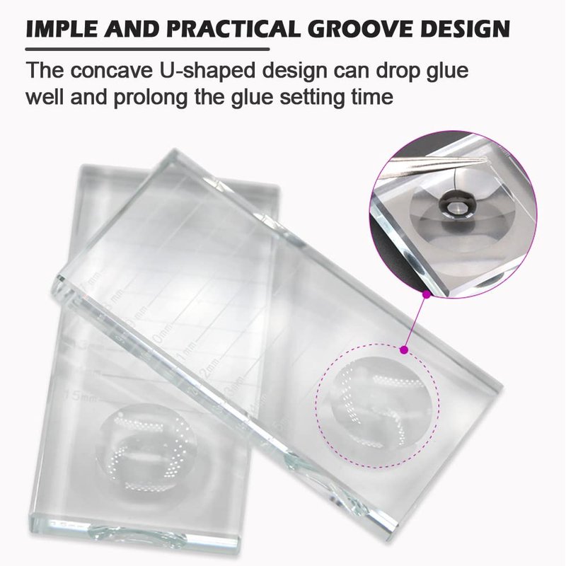 - 【Easily Use】Directly drop the glue in round groove, then display several fake eyelashes on the plate, finally start your eyelashes extension. Also used as nail art painting color toning glass palette.