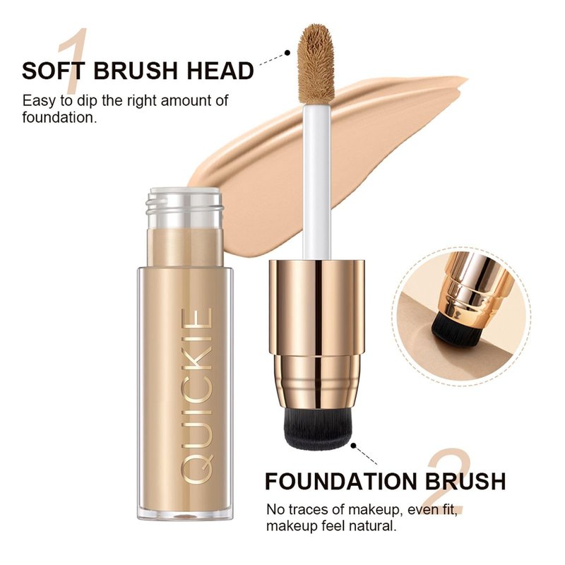 - Dual-ended brush: This full-coverage foundation is designed with a dual-ended brush that conforms to 2-in-1 concealer and liquid foundation, which is more suitable for cosmetics use. Gently open the base until the brush head is on the part of the face that needs makeup, and gently wipe evenly with the brush head.