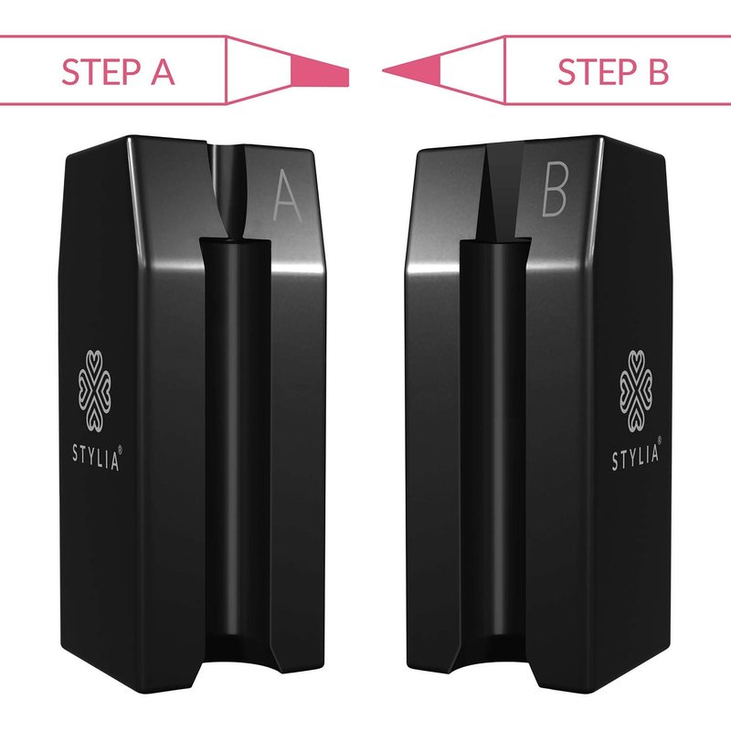 - CUSTOMIZE YOUR BROW PENCIL - Shape your pen's tip using this eye pencil shaper with 2 molds and 2 razor blades for a more precise outline and shading. It's compatible with the Stylia Waterproof Eyebrow Pencils! Pencils sold separately.