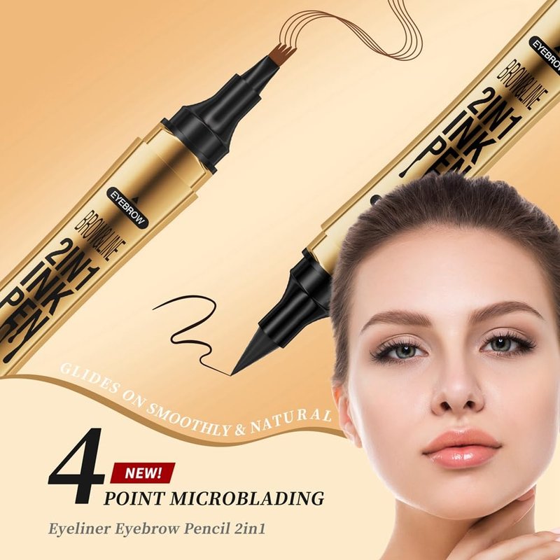 - 【2 in 1 Eyebrow Pencil & Eyeliner Pencil】New 2-in-1 dual-ended brow pencil with 4 tip microblading eyebrow pen fill and blend color into eyebrows, draw 3D natural real hair, and ultra-precision pen creates hair-like strokes & fill in sparse areas. Not only can be used as a liquid eyebrow pencil, but also can be used as a an eyeliner. It can be easily drawn with hair-thin strokes to create lines from thin to thick.