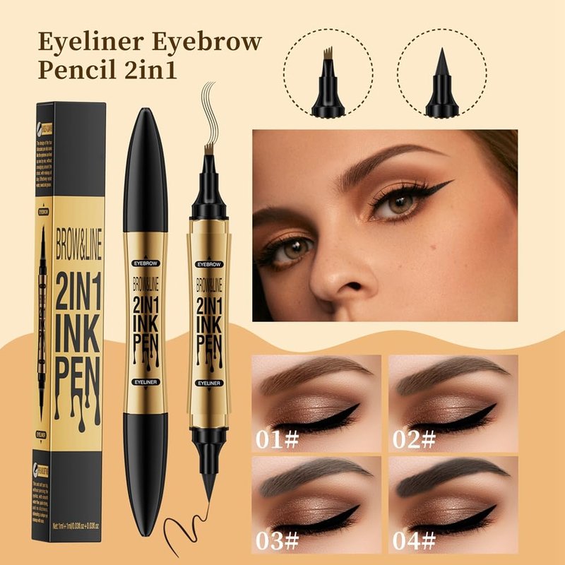- 【Elevate Your Eye Makeup】Dual-sided precision eyebrow pen has an ultra-fine eyeliner pencil on one end and a 4-prong micro-fork-tip brow applicator on the other end. This two-in-one tool effortlessly high-definition eye looks.