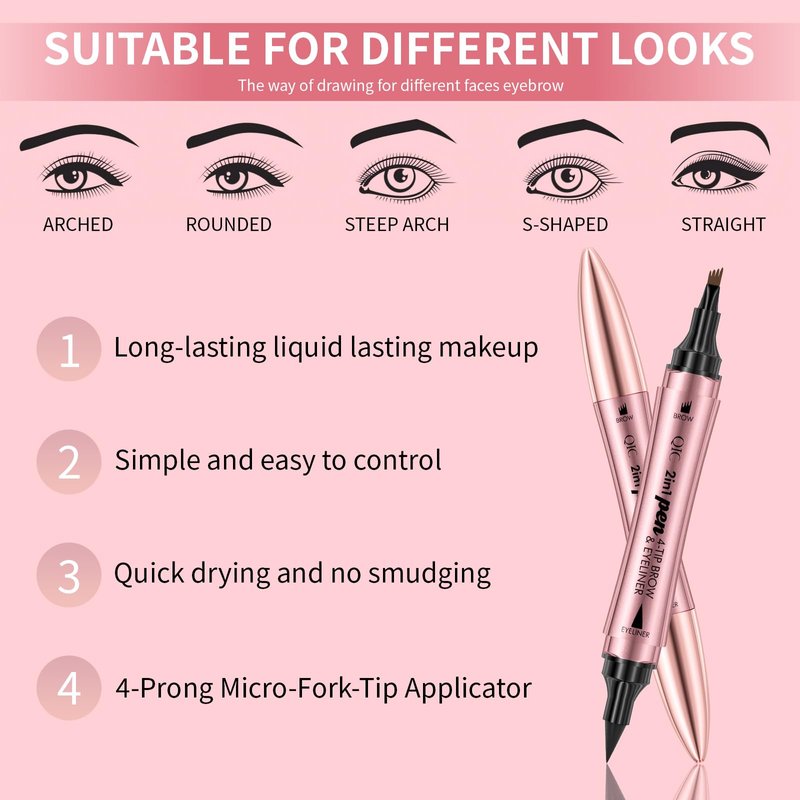 - Magic 4-Tip Brow Pencil: The innovative 4-Tip microblading eyebrow pencil can accurately fill in your eyebrows, 2-in-1 eyebrow pen and eyeliner, and create natural and beautiful eyebrow shapes