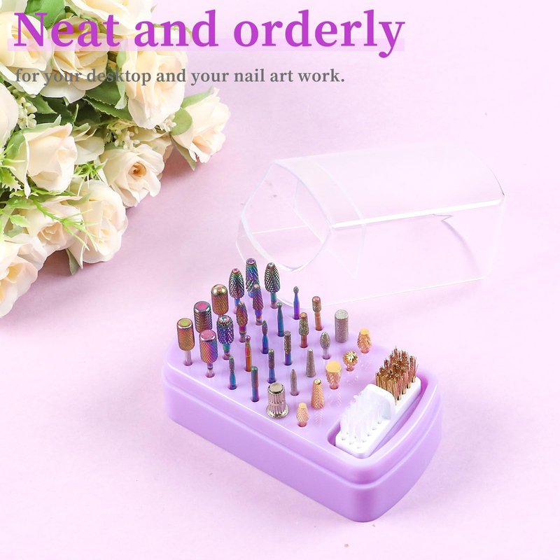 - 【Keep Your Desk Tidy】Acrylic Drill Bit Holder for Nails, It is a dustproof storage box to organizer your different drill bits, make your drill bits tidy and orderly, preventing it becoming dirty and losing. Easy to find and use. It's convenient to bring it outside for nail drill working.