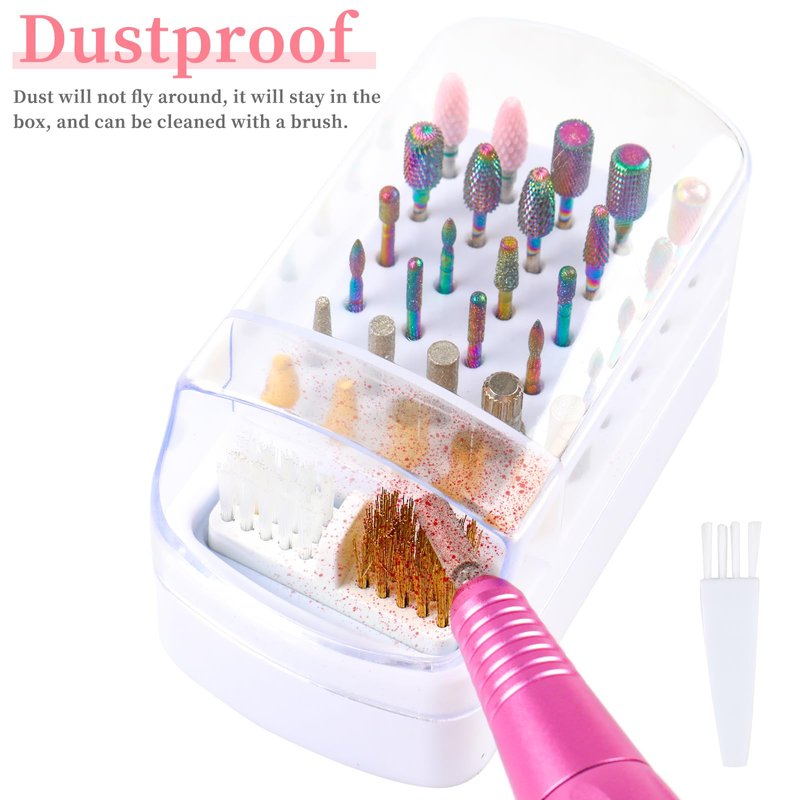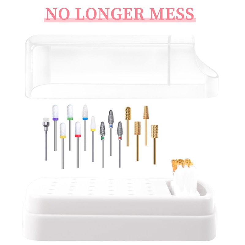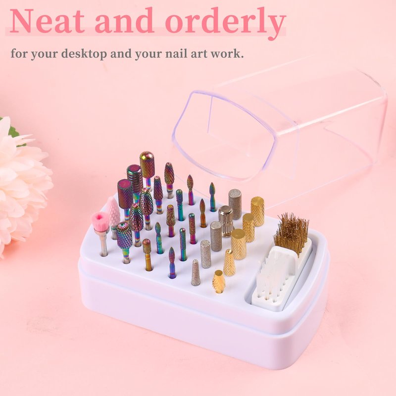 • 【Keep Your Desk Tidy】Acrylic Drill Bit Holder for Nails, It is a dustproof storage box to organizer your different drill bits, make your drill bits tidy and orderly, preventing it becoming dirty and losing. Easy to find and use. It's convenient to bring it outside for nail drill working.