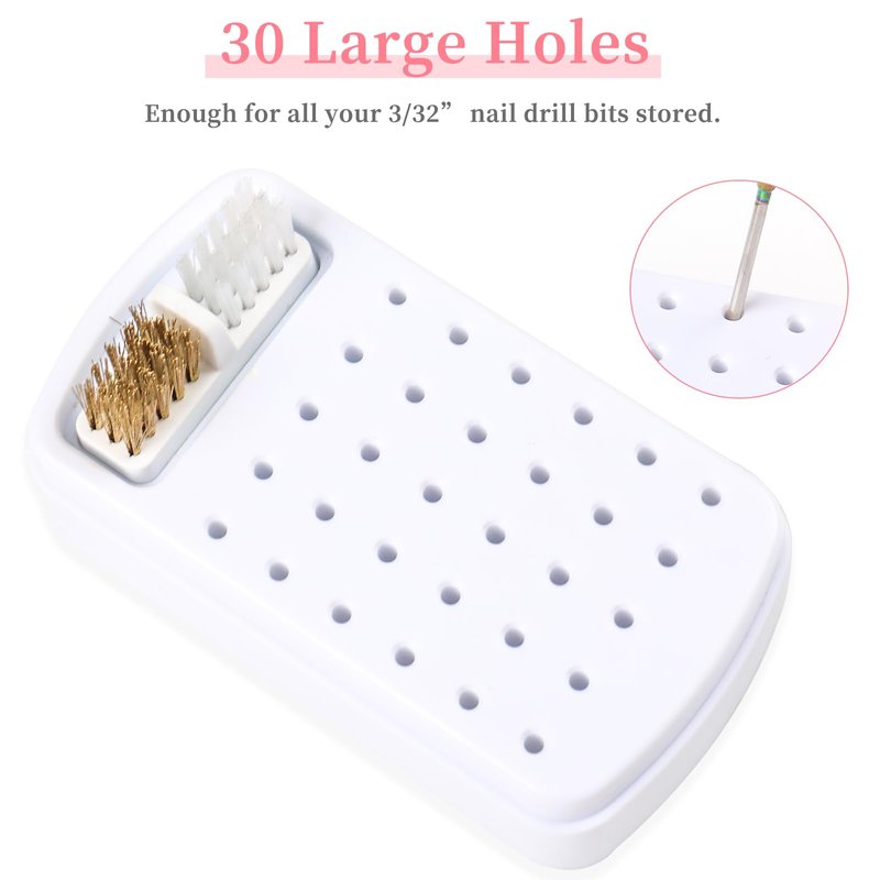 • 【30 Holes Nail Drill Bit Holder】The Nail Drill Bits Holder includes 30 holes, can be used to store 3/32'' nail drill bits, 3/32'' carbide nail drill bits, ceramic nail drill bit, and e-file nail drill bits and so on, keep your desktop neat and beautiful.