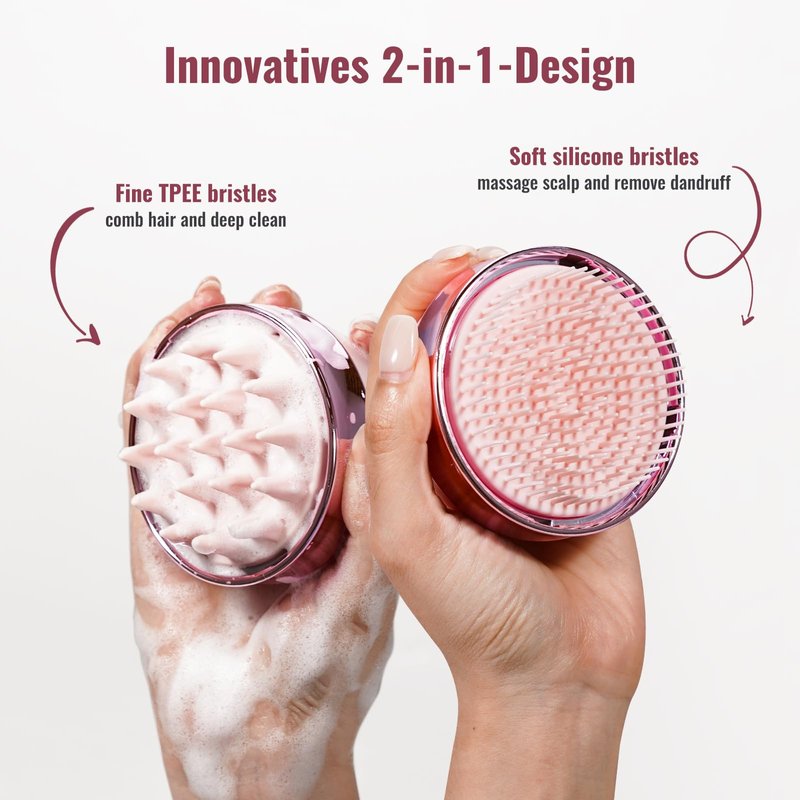 2-in-1 Scalp Massager Shampoo Brush, Scalp Scrubber for Hair Growth & Dandruff Removal, Hair Scrubber with Soft Silicone Bristles, Wet Dry Scalp Exfoliator for Scalp Care (Pink)