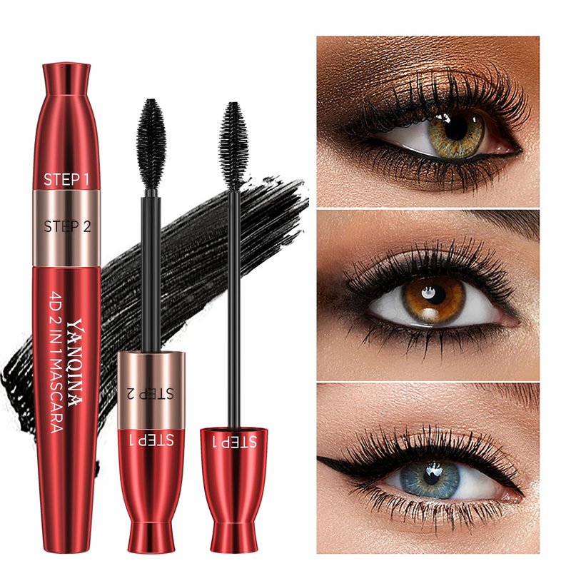 - STACKABLE 2 IN 1 MASCARA - Don't worry about using a thick mascara all the time, 2 different thicknesses black mascara to choose from(2 step mascara) , a black mascara and an ultra-thin mascara, giving you more options for your beautiful lashes! NOTE: Can use Step 1 as a priority, After you have applied it evenly, then use Step2, to Create perfectly black eyelashes