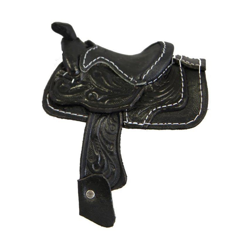 2" seat miniature leather saddle for decoration. Hand made with genuine tooled leather, fleece back. Great for craft projects or can be used as a western décor. This is a hand made product, some may have minor cosmetic imperfection. Size: 4 1⁄4" long x 3" wide