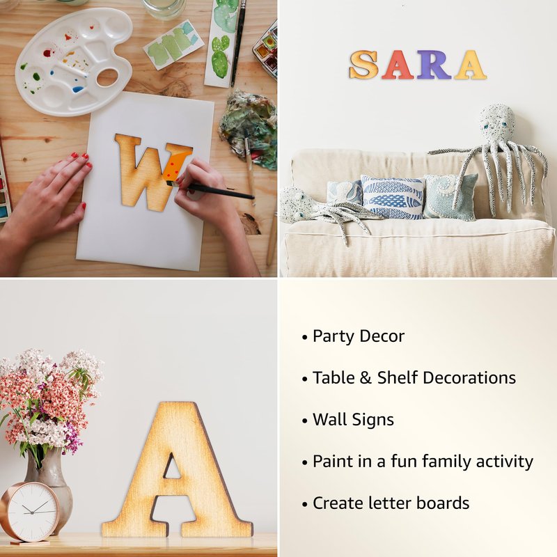 - Easy-to-Personalize Design: Easy to paint, they are the perfect wooden letters for crafts; Whether you prefer the natural wood look or vibrant colors, each wood letter serves as a blank canvas for your artistic expression.