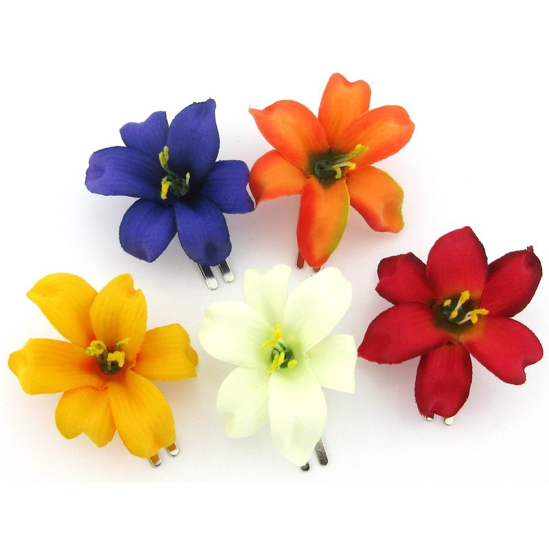 - 5 piece lot 2" multi colors lily silk flower hair clips