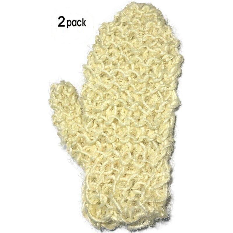 2 PACK 100% Natural Exfoliating Sisal Fiber Loofah Glove Mitt Mitten - Bath Sponge Scrubber Remove Dead Skin - Great for Skin Care in the Bath - Spa or Shower For Human or Pets