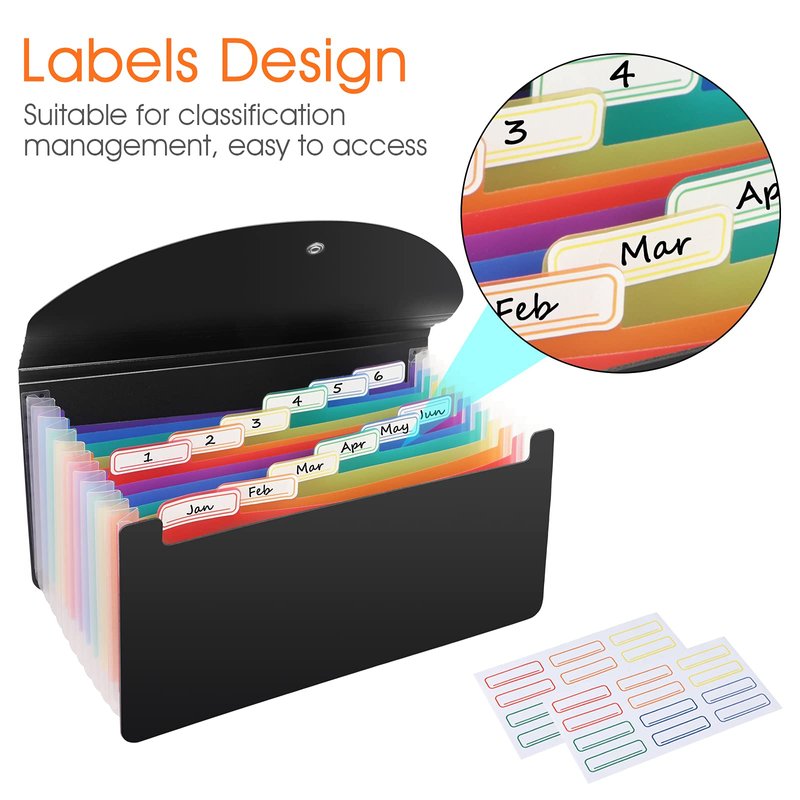 - 2 Pack 13 Pockets accordion file organizer, colored labels for easy subdivision and indexing.