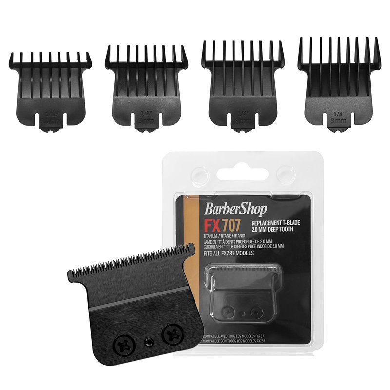 2 Pack 707B Replacement Blade compatible with BaBylissPRO FX787 & FX726 Trimmers,2 Pack DLC Replacement Blades with 4 Guards Set Compatible with BaByliss Trimmer Blades,Black