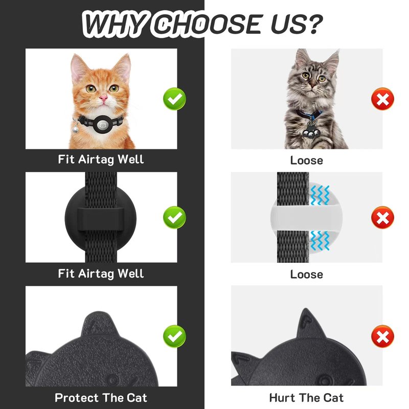 - 🐱【Track Cats Easily,Designed for AIRTAG】Our cat collar comes with an elastic airtag silicone case,designed for Apple AirTag.which can well protect your airtag device and prevent airtag from falling off or dangling,The protective cover is very light