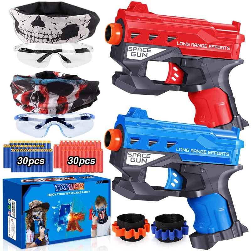 2 Pack Blaster Guns Boys Toy-with 60 Bullets &2 Wristbands, TiopLior Blaster Guns Toy Age for 4-9 Christmas Birthday Gifts &2 Safety Glasses/Face Masks for 6+ Year Old Kids Games Toys