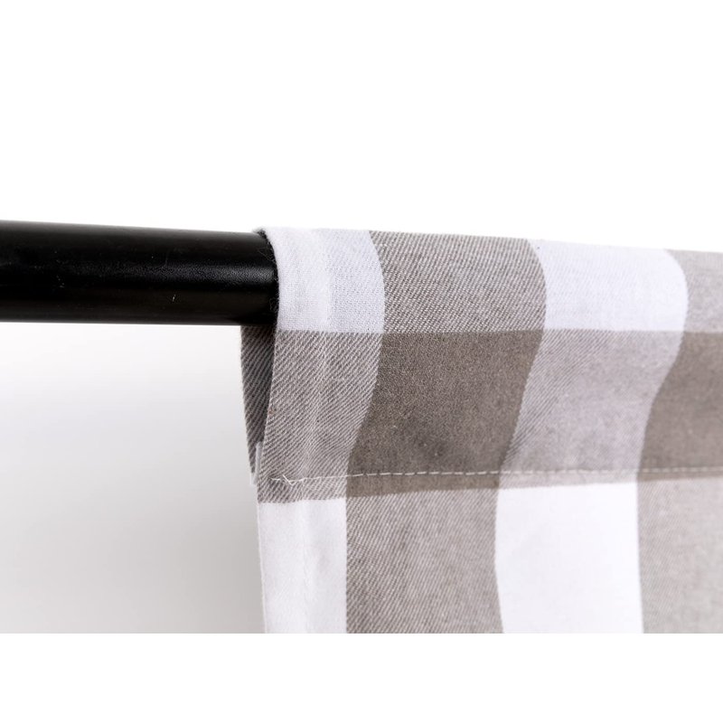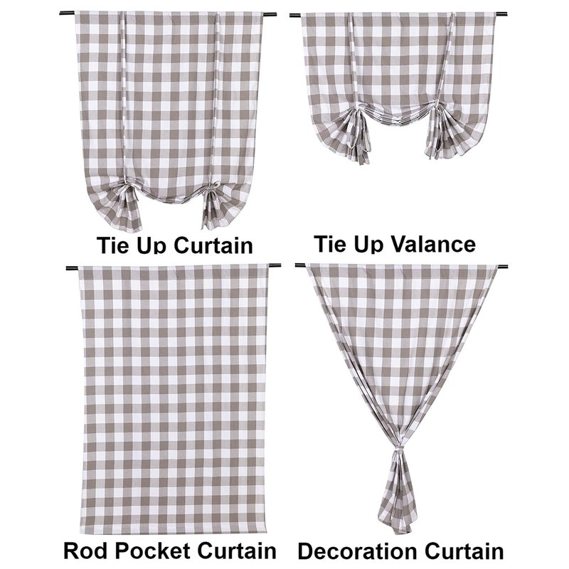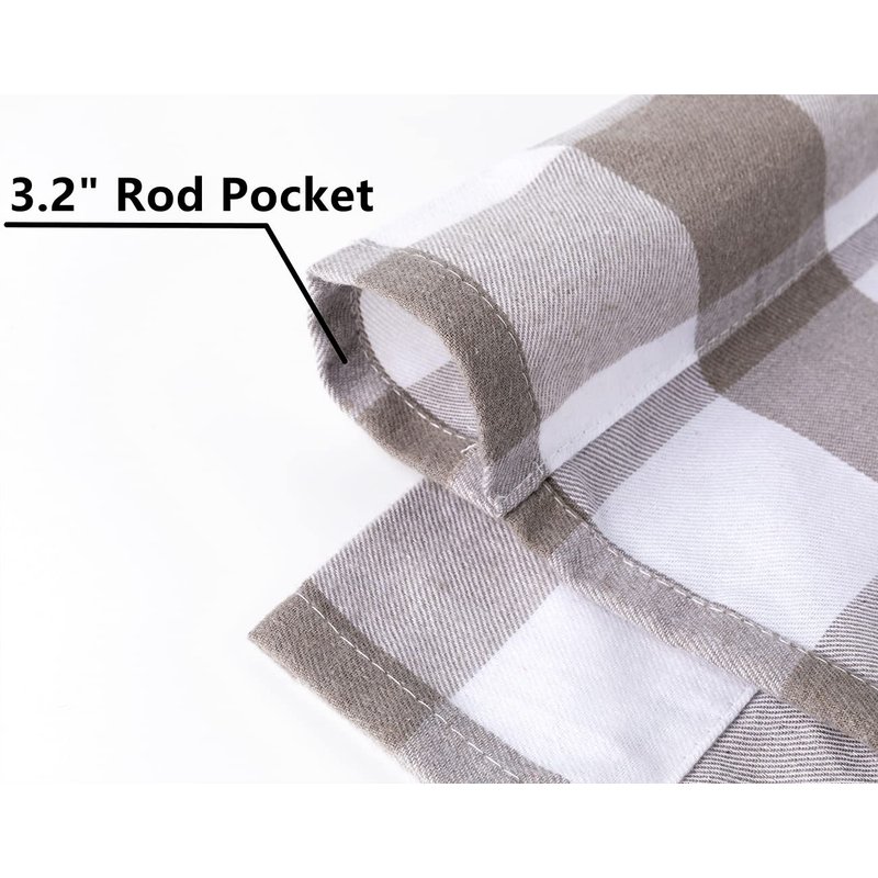 - PACKAGE AND SIZE: Included 2 pack buffalo check tie up shades. Single curtain measure: 42" Wide and 63" Long. With 3.2 inch rod pocket which fits up to 1.6 inch diameter basic or decorative curtain rods.