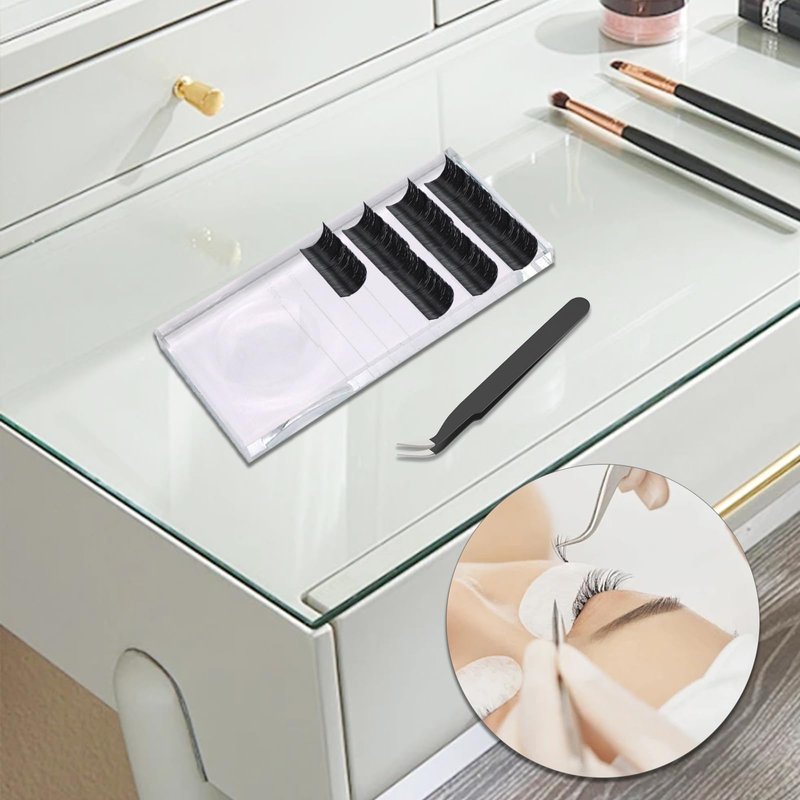 Lash extension tray helps you organize different sizes of fake eyelashes. You can have all things in one tray, to meet your various needs. The glue groove can hold a proper amount of glue. No more mess around your dressing table.