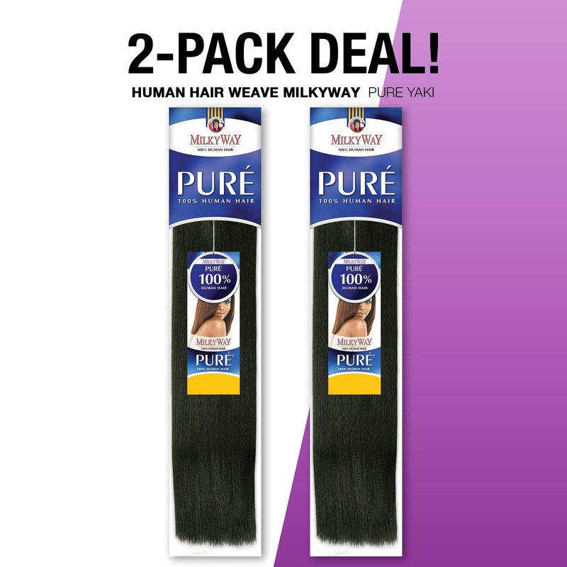 2-PACK DEALS! Human Hair Weave MilkyWay Pure Yaki (10", 1B)
