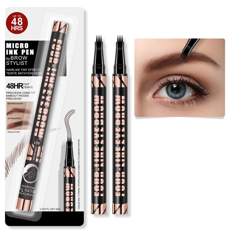 - [GET NATURAL BROWS]The eyebrow pencil features a 4-pronged 3D fork pen tip,applicator and a precise ultra-fine brush tip, making it easy to blend color into eyebrows. This microblading eyebrow pencil symmetrical brows in just seconds, creates natural-looking, ultra-precise, well-defined, flawless, 3D natural brows.