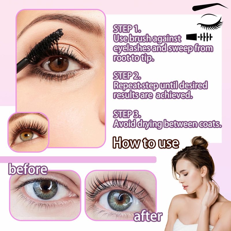 - 🌱【Easy to Use】Thick mascara has a unique brush design that precisely coats each lash,allowing for even application without clumping.The brush is soft and comfortable to use and is suitable for all types of lashes,making it easy to create your desired look.