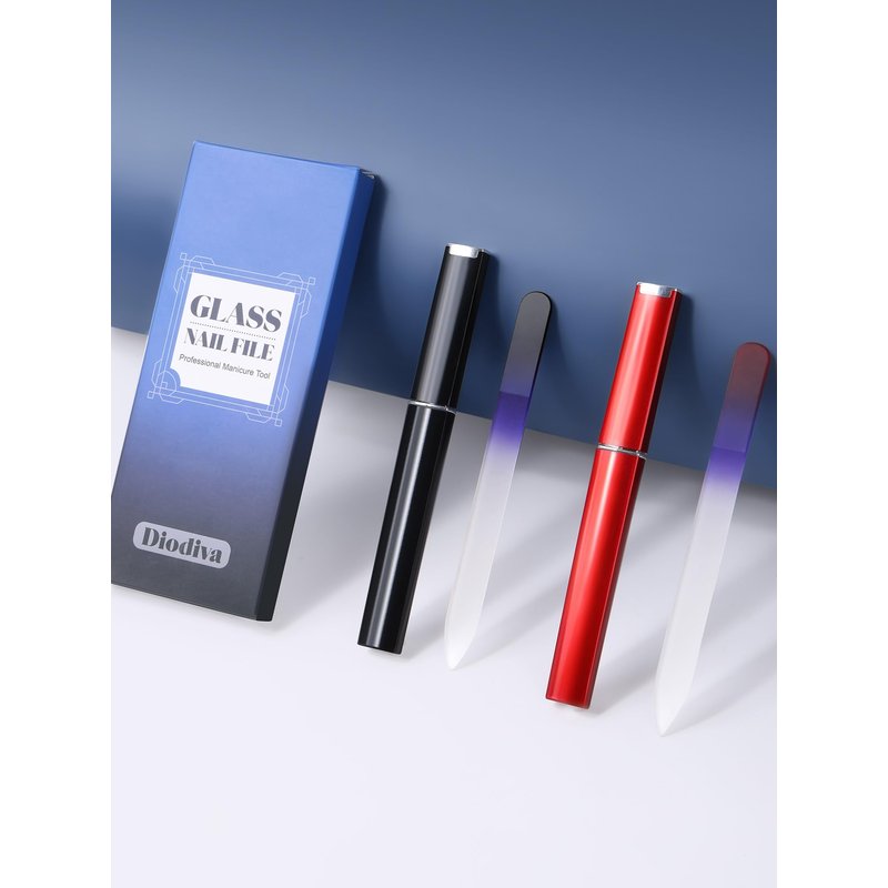 - Ideal Gift — Cool unique gifts or stocking stuffers for family & friends. Package includes 2 packs of etched glass nail files with case (Black + Red).