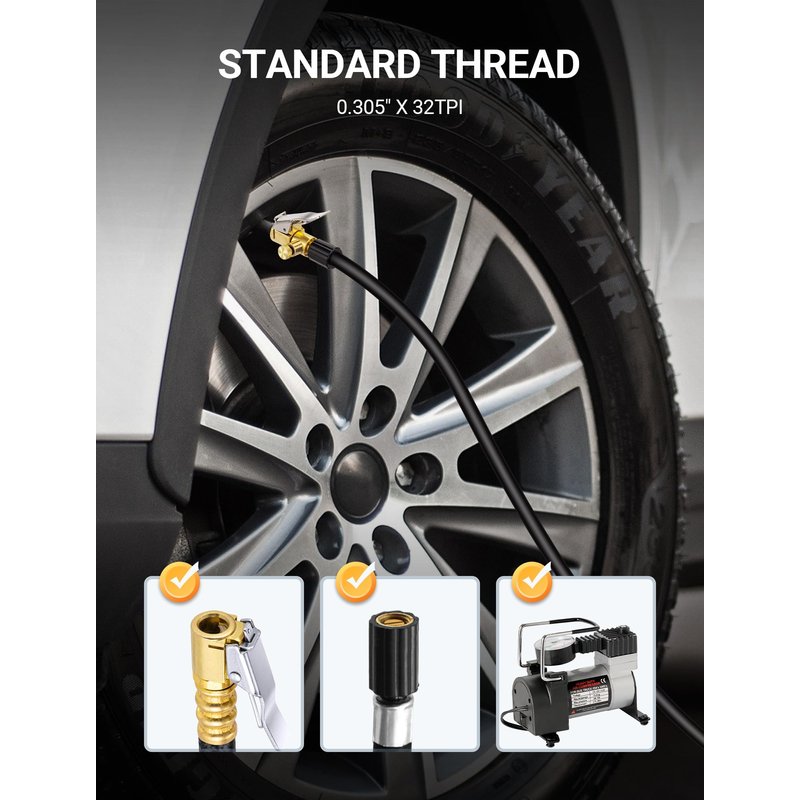【Hands Free & Leakage Solver】This premium air chuck with tire valve fine thread, was specially designed to resolve the annoying air leakage problem by converting tire inflator's screw-on (twist-on) hose end to lock-on air chuck, just put on and lock the clamp, start your hands free tire inflation with its great seal and depress without air leakage.