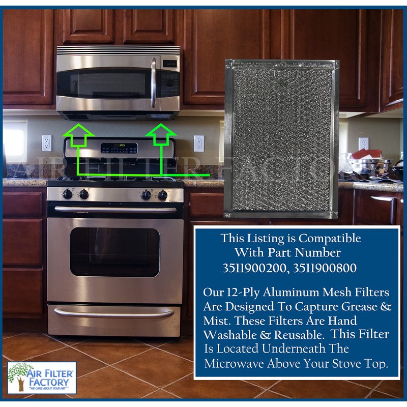 - Part Number – WB06X10309, WB06X10654, WB06X10359, WB02X25388, WB02X32793, PS228019, 3511900200, 3511900800, 383EW1A023A Microwave Grease Filter Replacements For Microwave Oven. 12-Layer Aluminum Grease Filter Replacement. Package Contains 2-Filters For Easy Replacement, Filters Are Packaged In a Durable Chipboard Envelope To Prevent Possible Damage In Transit