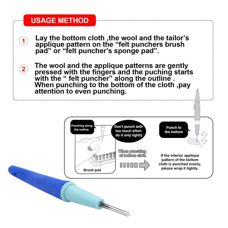 - 【Reminder】- You should make the needle go in and out in the same direction, otherwise you will easily break the needle, the well-made pen needle felt tool is made of PVC and alloy, strong and durable, it can bring fast and efficient felt needlecraft.