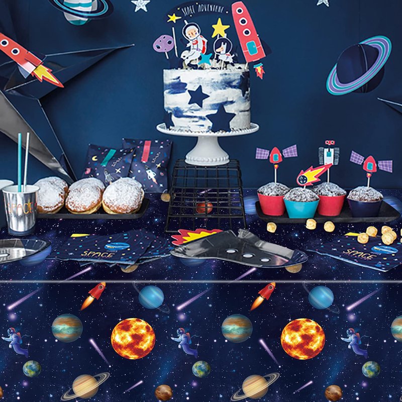 - 【Easy to Clean】These solar system theme table covers are splash and stain-resistant, suitable for collecting any messy spills from food, dessert, spilled milk, juice, or soda, etc., and easy to clean up after the party, you can simply wipe and store them for next use, or just throw them away.