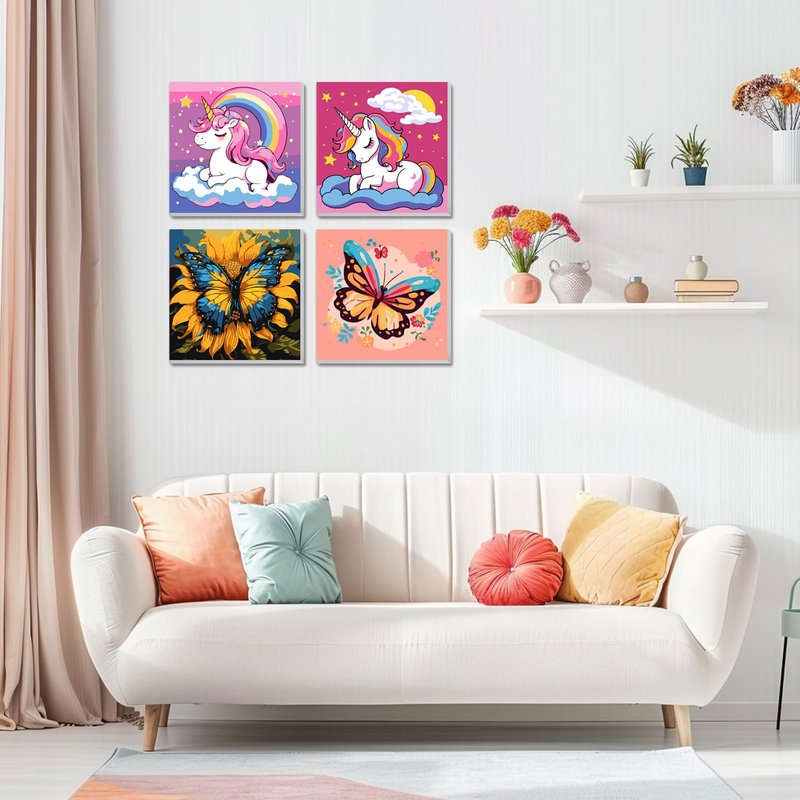 2 Pack Paint by Numbers Kit for Kids Paint by Number Kits Age 4-8 Painting Kits for Kids Ages 8-12 Girls Framed Canvas Paint by Number Cartoon Drawing Kit Color by Number Kids for Beginners 8x8 Inch