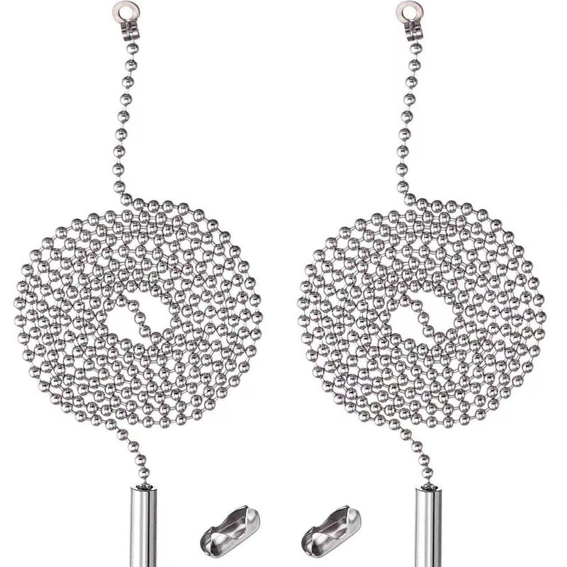 - 2 Pack ceiling fan pull chain extension: every fan and light pull chain set contains 3.3 feet/ 1 meter long stainless steel ceiling fan chain, each bead chain with a cylindrical ring, a pull line clasp and one bead chain clasp