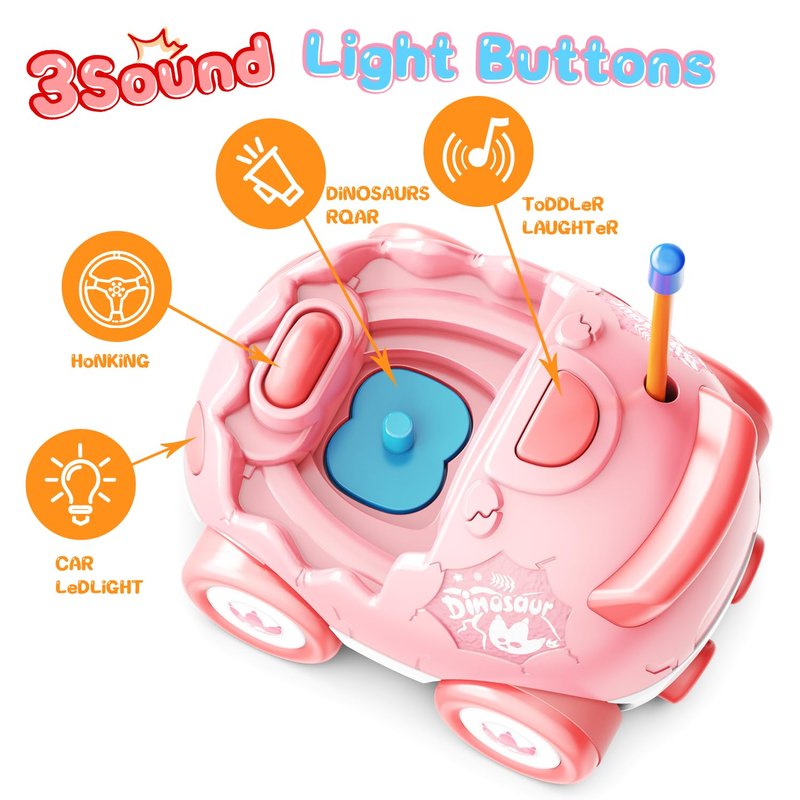 2 Pack Remote Control Car Toys for Girls 2 3 4 Years Old, Race Cars for Toddlers, Dinosaur Toys for Kids 2-4, RC Car Toys with Music, Birthday/Xmas Gifts for Kids, Girls(Pink Blue)