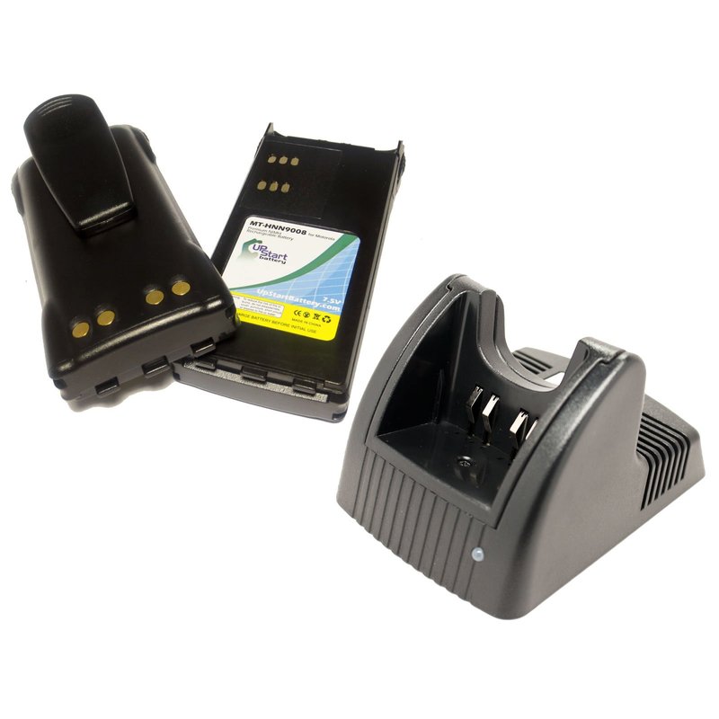 2 Pack - Replacement for Motorola HT750 Battery + Charger - Compatible with Motorola HNN9008A Two-Way Radio Battery and Charger (1300mAh 7.5V NI-MH)