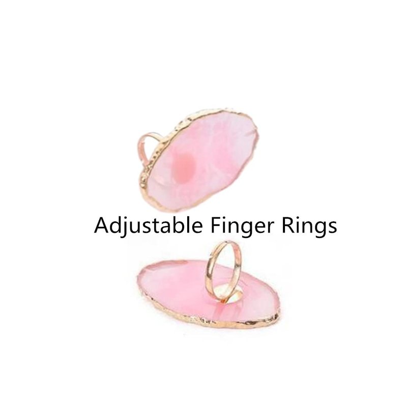 2 Pack Resin Stone Nail Art Palettes with Adjustable Finger Rings, Colorful Marble DIY Gel Polish Mixing Tray Plate for Eyelash Extension Glue Holder (Pink, Blue)