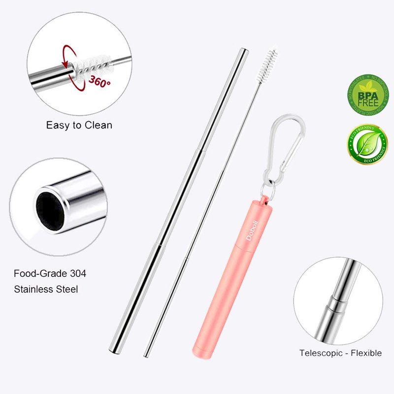 - Metal Straws 2 Pack:Includes Reusable straws,cleaning brush,Keychain,Case.